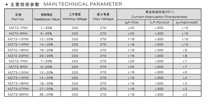 PTC插件熱敏電阻 MZ21-P300RMG