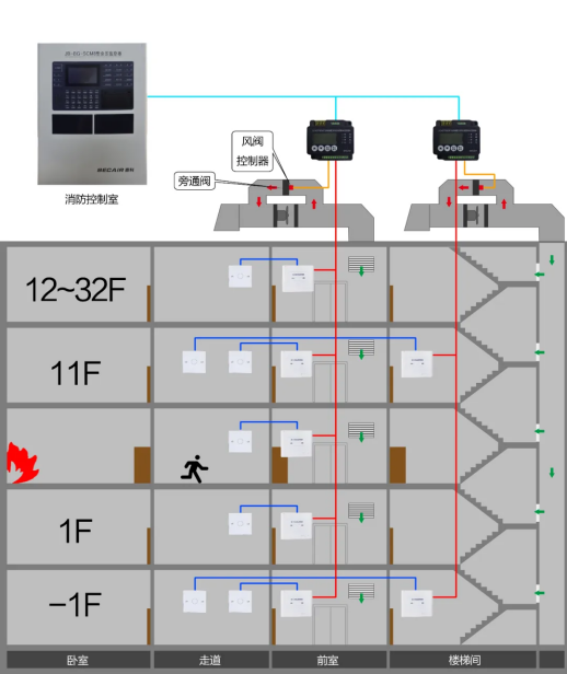 在消防行業(yè),一般是通過(guò)余壓探測(cè)器來(lái)時(shí)刻監(jiān)控樓梯間與前室之間的氣壓差,根據(jù)差值大小來(lái)控制風(fēng)機(jī)給樓梯間或前室的送風(fēng)量,使樓梯間的氣壓始終高出前室氣壓一定范圍內(nèi)。阻止煙霧擴(kuò)散,順利打開逃生門,且在逃生過(guò)程中遲可能不因過(guò)多煙霧吸入,保護(hù)人員安全;
