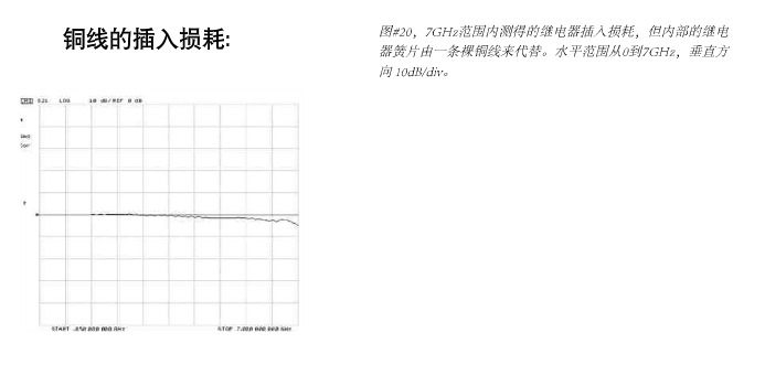 干簧開關(guān)的簧片已被一條純銅線所代替比較圖#19和#20兩圖的區(qū)別非常小或幾乎一致。當(dāng)然在傳輸大功率信號時還是有些細(xì)微差別的。但我們的許多應(yīng)用的情況下信號功率都是非常低的因此我們在7GHz之前所存在的差異是可以忽略不計的。