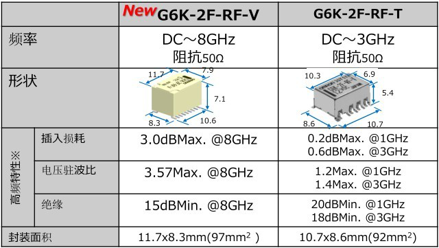 1.G6K-2F-RF-V系列8GHz高頻繼電器