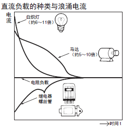 接不同負載的直流電路,電路中的浪涌值和電路中額定電流值的倍數(shù)關(guān)系如下圖:
