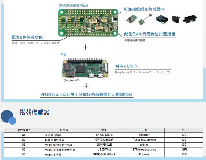歐姆龍電子部件作為一家在傳感器領域有著先進技術的高科技公司發(fā)布了傳感器評估板——2JCIE-EV,展示了歐姆龍領先于世界的高新技術在傳感器領域的應用,幫助設計人員和工程師快速評估和開發(fā)測試。同時該評估板支持接入三大開放性平臺(Raspberry Pi*1、Arduino*2、Adafruit*3)并且適用于多種類型傳感器的評估。