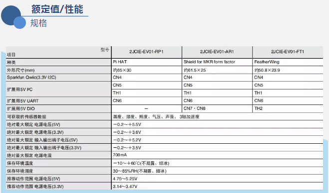 2JCIE-EV評估板共有以下三種型號:2JCIE-EV01-RP1、2JCIE-EV01-AR1、2JCIE-EV01-FT1,分別對應了Raspberry Pi*1、Arduino*2、Adafruit*3三大平臺。
