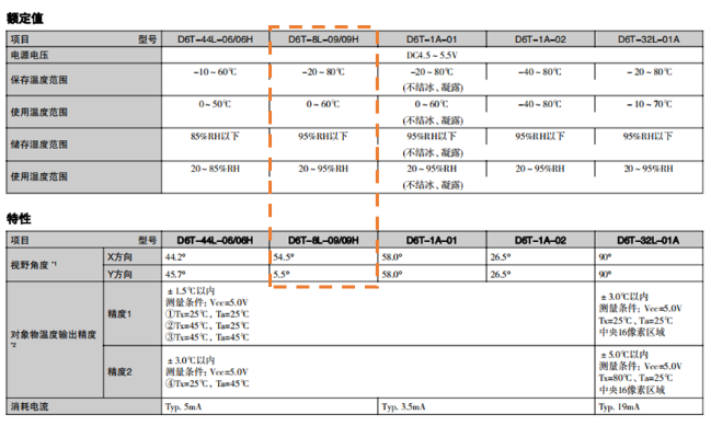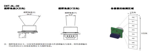 歐姆龍非接觸溫度傳感器D6T-8L-09以其紅外測(cè)檢測(cè),I2C數(shù)字輸出,抗干擾性強(qiáng)三大優(yōu)勢(shì)為您的產(chǎn)品增加人體感應(yīng)功能,讓您的產(chǎn)品穩(wěn)定可靠,獨(dú)具特色。此傳感器像素為1x8,檢測(cè)區(qū)域呈長(zhǎng)條形,橫向視場(chǎng)角54.5°,縱向視場(chǎng)角 5.5°,可根據(jù)產(chǎn)品的實(shí)際應(yīng)用進(jìn)行安裝角度調(diào)整。