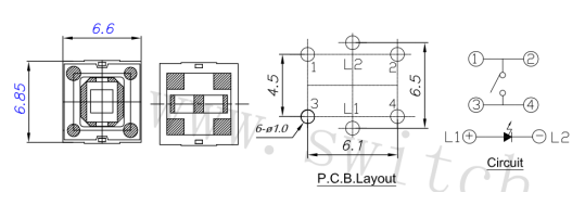 帶燈輕觸開關(guān),一種帶有燈的輕觸開關(guān),在沒有動(dòng)作力的時(shí)候,開關(guān)沒有燈的顏色。當(dāng)有動(dòng)作力實(shí)施的時(shí)候,開關(guān)就會(huì)有相應(yīng)的顏色。帶燈輕觸開關(guān)有單色燈和雙色燈可以選擇。LED燈的顏色可以選擇紅色、橙色、黃色、綠色、藍(lán)色、雙色等。一般帶燈輕觸開關(guān)的壽命最低達(dá)到10萬次,常規(guī)的還有20萬次壽命、50萬次壽命、高壽命也可達(dá)100萬次。