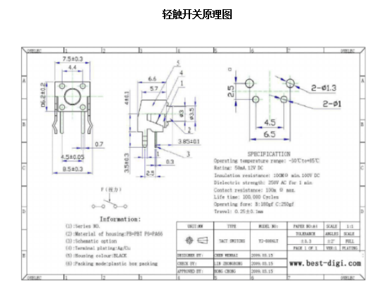 挑選輕觸開關(guān)方法二:出廠檢驗(yàn)的方法和項(xiàng)目也影響最終輕觸開關(guān)的品質(zhì),比如是外觀、