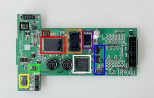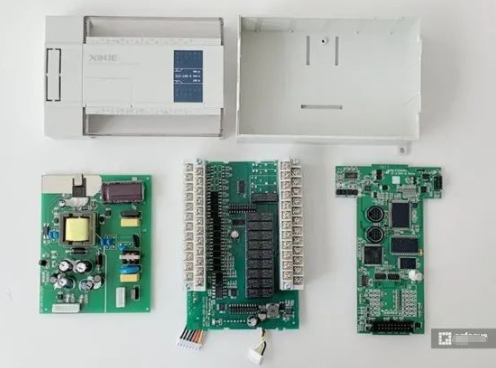 PLC 在 PCB 設計上分為了 3 個板子,從左至右分別為電源板、IO 口板以及主控板。