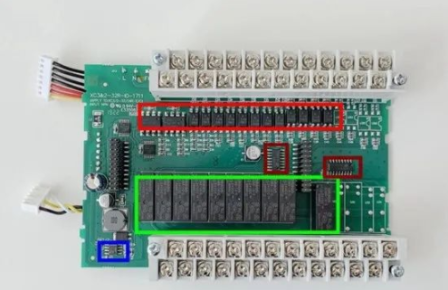 其次,這 IO 接口板上我們也可以發(fā)現(xiàn)此 PLC 是基于繼電器的輸出,這里的話采用的歐姆龍的繼電器(型號為 G5NB-1A-E-DC24<綠色>