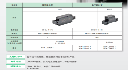 歐姆龍B5W系列限定反射型傳感器(如圖二)采用了收縮投光、受光側(cè)的光路直徑,以獲取物體表面的正反射光的光學(xué)設(shè)計。因此,照射到檢測物體上的光束密度高,易于檢測低反射率物體。