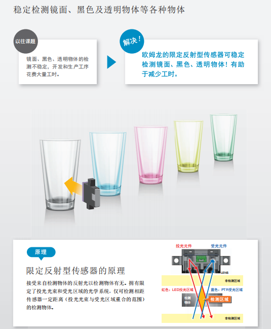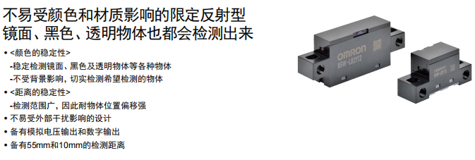 對于玻璃機械來說,歐姆龍檢測有無的光電傳感器B5W-LB2112-1擁有著絕對優(yōu)勢。歐姆龍傳感器抗陽光干擾強,可穩(wěn)定檢測鏡面、黑色、透明物體,接受來自檢測物體的反射光以檢測物體有無,擁有限定了投光光束和受光區(qū)域的光學系統(tǒng),僅可檢測相距傳感器一定距離(投光光束與受光區(qū)域重合的范圍)的檢測物體。