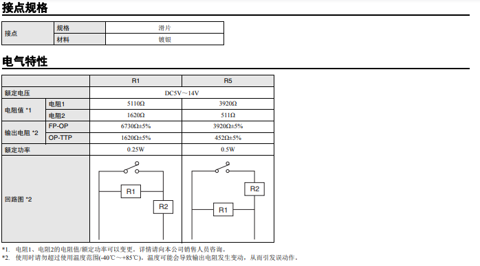 內(nèi)置電阻,可檢測(cè)4種狀態(tài) 長(zhǎng)行程密封型開關(guān) 開關(guān) ON/OFF/短路/斷線 輸出4種狀態(tài) 即使無(wú)擺桿也便于使用的長(zhǎng)行程規(guī)格 (OT參考值:1.4mm) 憑借滑動(dòng)接點(diǎn)結(jié)構(gòu)實(shí)現(xiàn)高接觸可靠性和安靜的動(dòng)作音