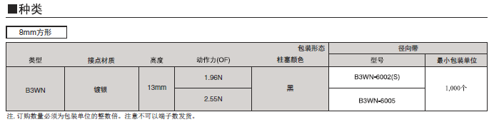 B3WN 系列歐姆龍輕觸式開關(guān)