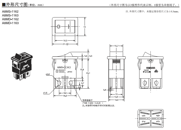 實現(xiàn)16A開關(guān)性能的小型船形開關(guān) 小型、16A的開關(guān)性能。 可進行一觸式安裝。 符合UL、cUL認(rèn)證,EN標(biāo)準(zhǔn)適用品。