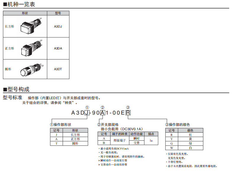 A3C系列按鈕歐姆龍開關(guān)(帶燈、不帶燈)(圓型φ12)