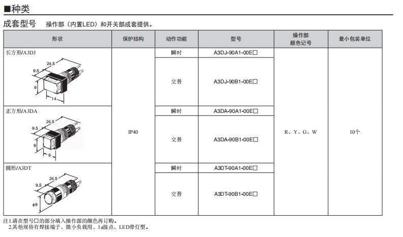 A16□-P 按鈕歐姆龍開關(guān)(分離式)(帶燈·不帶燈)(φ16)