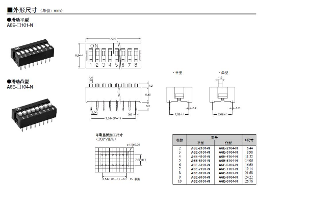 A6E-□104-N 歐姆龍開關(guān) 滑動型盒型DIP開關(guān)