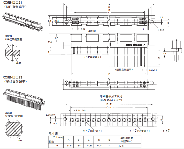 XC5B-3221 2列型插座/板對(duì)板連接器