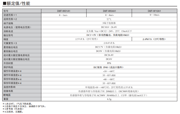 風(fēng)量傳感器D6F-W01A1