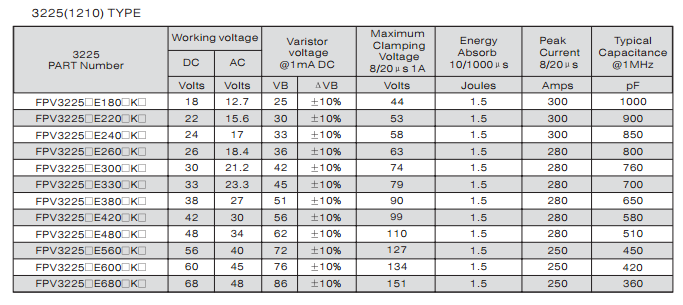 特征: 1、疊層片式陶瓷結(jié)構(gòu)。 2、無引線。 3、溫度范圍:-55℃~+125 ℃。 4、工作電壓范圍V w(dc)=3.3~ 615V。 5、具有雙向限制特性,適合ESD保護。 6、漏電流非常小。 7、寄生電感小、響應(yīng)速度快(響應(yīng)時間少于0.5ns)。 8、優(yōu)良的溫度系數(shù)。 9、良好的焊接性能(端電極為三層電鍍)。 應(yīng)用: 1、防止過電壓:當施加的電壓升高到壓敏電壓時,壓敏電阻器的電流急劇上升,被保護設(shè)備的浪涌電壓迅速減小,從而使裝有壓敏電阻器的設(shè)備抗浪涌噪聲能力達到相應(yīng)要求。
